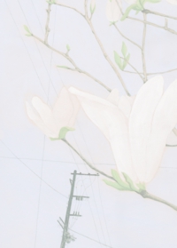 下町の路地や電線を描いています。